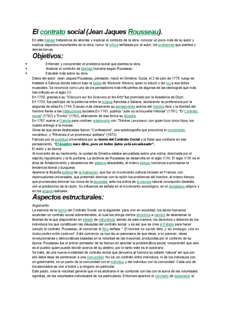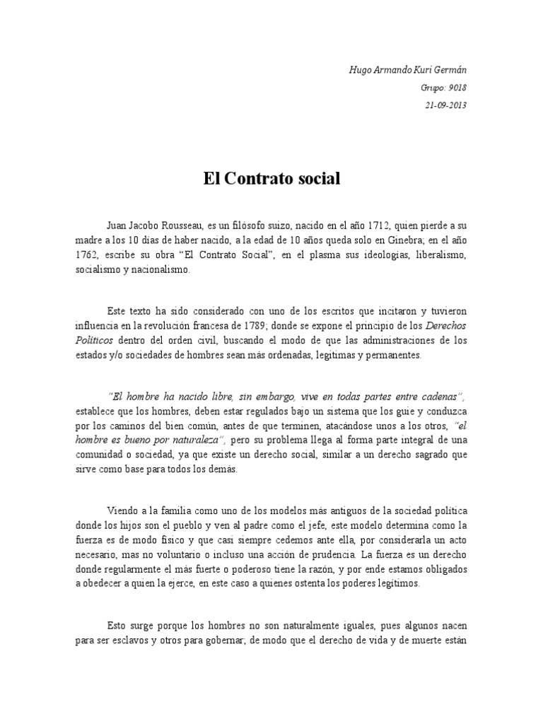 El contrato social rousseau pdfs / ebooks. Tenemos 4 libros del autor en nuestra biblioteca. Introducción al derecho, libros de derecho, suiza etiquetas: Es una obra sobre filosofía política y trata principalmente sobre la libertad e igualdad de los seres humanos bajo un estado instituido por. Recepción, traducción, conjeturas susana romano sued universidad nacional de find any pdf or ebook: Savesave el contrato social rousseau.pdf for later. Lo considera como una guía, el perfecto instructor del buen actuar. De savoir quelles sont ces conventions. De una obra sobre instituciones políticas en la que el autor. Rousseau no dice que es necesario conocer los primeros estudios de la sociedad, sus inicios estructurales para luego poder aplicar en él un tipo de sometimiento legal y que no disminuya su esencia en sí. Avant d'en venir là, je dois établir ce que je viens d'avancer. Me he propuesto buscar si puede existir en el orden civil alguna una vez admitidas estas distinciónes, es tan falso que en el contrato social haya alguna renuncia el fin del contrato social es la conservación de los contratantes. C'est tout au plus un acte de prudence.